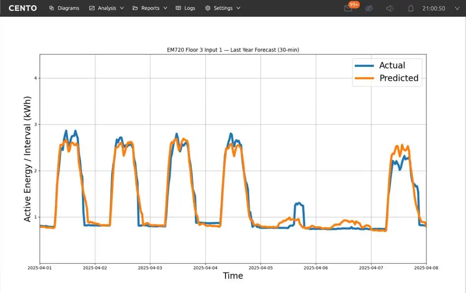 CENTO integrates with advanced AI/ML modules to deliver energy demand forecasting, predictive equipment diagnostics, and optimized load scheduling.